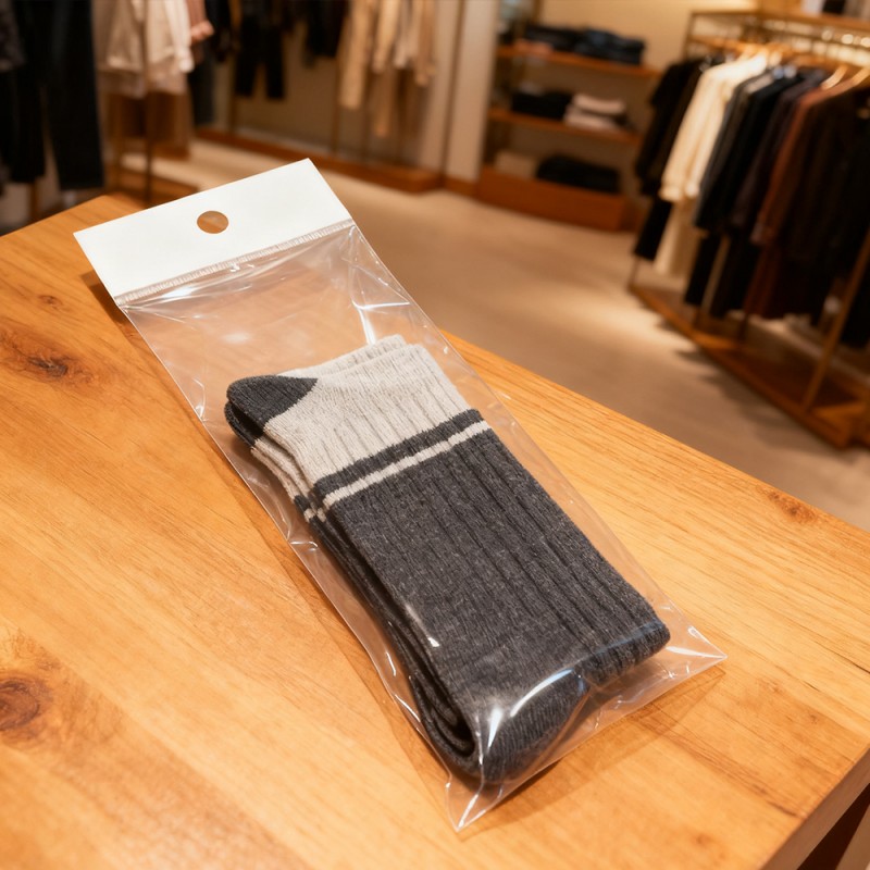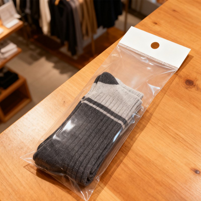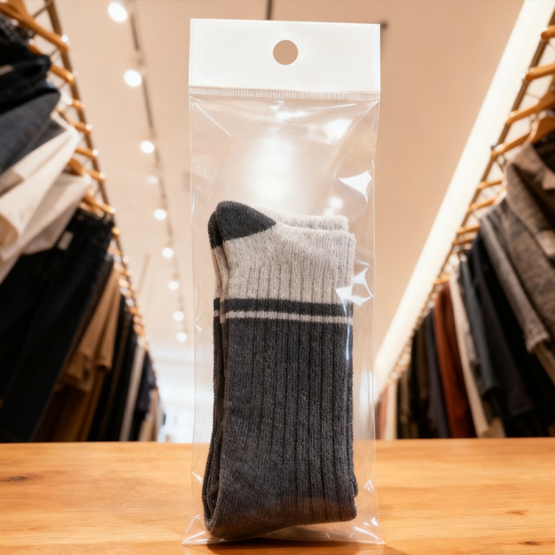 Aparência transparente: Nosso material BOPP possui alta transparência, que pode exibir a cor, textura e design das roupas sem deformação. A superfície de alto brilho aumenta o valor sensorial das roupas, fazendo com que elas se destaquem em ambientes de varejo ou entrega de comércio eletrônico. Superfícies não impressas: superfícies não impressas proprietárias evitam a transferência de tinta de designs impressos em etiquetas, marcas registradas ou roupas. Elimina o risco de manchas em tecidos delicados, roupas brancas ou roupas luxuosas, garantindo que as peças cheguem ao showroom nas melhores condições. Durabilidade: Comparado às alternativas padrão de PE e PP, o material BOPP tem excelente resistência à tração, resistência à perfuração e resistência ao rasgo. Ele pode proteger as roupas contra desgaste, danos de manuseio e fatores ambientais durante o transporte e armazenamento. Resistência à umidade e poeira: A barreira à prova d'água protege as roupas contra umidade, poeira e poluentes, mantendo a integridade e limpeza do tecido. Isto é particularmente eficaz para transporte ou armazenamento de longa distância sob diferentes condições climáticas. Design Personalizável: Personalize sacolas de embalagem de acordo com a necessidade da sua marca, com tamanho, espessura e opções de vedação ajustáveis (como selagem autoadesiva, selagem a quente). As opções de rolos ou sacos individuais podem acomodar processos de embalagem automáticos e manuais. Você também pode adicionar cabeças de cartão para exibição conveniente.