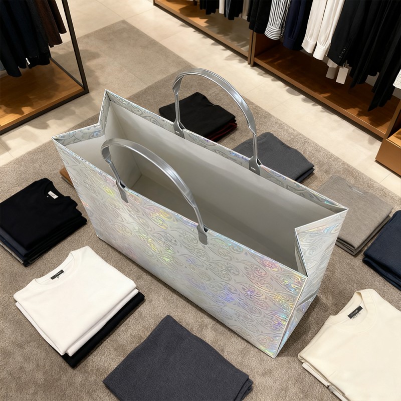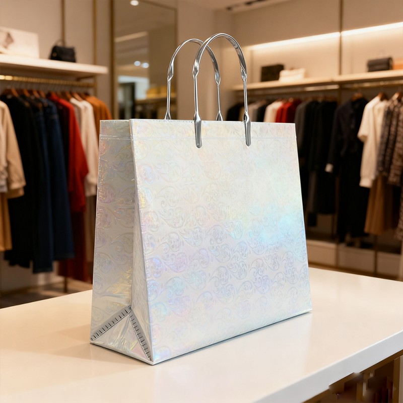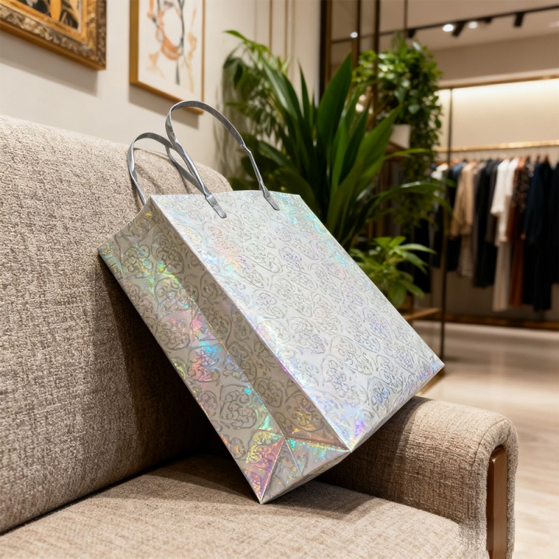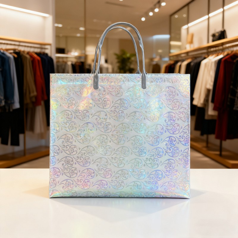 Superfície cintilante: o filme glitter é incorporado com partículas finas de glitter premium que captam e refletem a luz de todos os ângulos, criando um brilho cativante e multidimensional. Isso instantaneamente chama a atenção e gera uma sensação de entusiasmo e celebração. Textura Luxuosa: Ao contrário do brilho descascado, nosso filme laminado mantém permanentemente seu brilho sob uma camada protetora suave. Isso garante uma experiência de usuário limpa e organizada, ao mesmo tempo que proporciona uma sensação tátil confortável. Design reutilizável: A combinação de um núcleo de papel resistente e uma superfície laminada resistente torna esta bolsa construída para durar. Sua capacidade de manter o brilho ao longo do tempo incentiva o uso repetido, transformando seus clientes em embaixadores ambulantes da marca muito depois da compra inicial. Impressão requintada: Nossa equipe de design pode projetar padrões de acordo com suas necessidades e apresentá-los no produto com nossos equipamentos sofisticados e tecnologia avançada. Seu logotipo e design podem ser aplicados com cores claras e vibrantes, criando um belo contraste com um fundo brilhante para alcançar o máximo reconhecimento da marca. Personalização personalizada: os clientes podem alterar cores, substituir alças, adicionar padrões específicos e personalizar tamanhos de acordo com suas necessidades. Fornece flexibilidade extraordinária para combinar com as cores específicas da sua marca e requisitos funcionais para diferentes eventos.