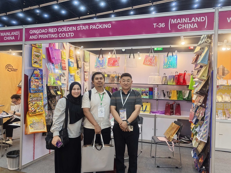 QINGDAO RED GOLDEN STAR EMBALAGEM E IMPRESSÃO CO., LTD.tem muito orgulho de anunciar nossa participação de sucesso no MEGA SHOW 2025 em Bangkok, Tailândia. Esta feira é uma feira internacional muito importante e proporciona uma excelente plataforma para a nossa empresa apresentar os nossos novos produtos e também fortalecer a nossa presença global.
