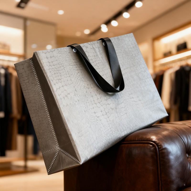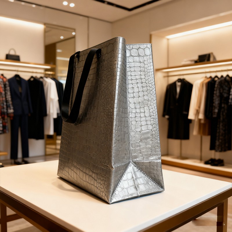 Tratamento de superfície elegante: A camada VCM cria uma superfície semelhante a couro de alta qualidade com um toque suave e aparência visualmente marcante. Possui acabamento de alto brilho ou fosco, que pode transmitir imediatamente uma sensação de luxo. Excelente durabilidade: Possui excelente resistência a arranhões, desgaste e desgaste diário. Isso garante que o produto permaneça em seu estado original por muito tempo, tornando a sacola altamente reutilizável. À prova d'água e à prova de umidade: Este produto pode prevenir eficazmente o transbordamento, a umidade e a umidade, proporcionando excelente proteção para o conteúdo. Excelente capacidade de impressão: A superfície VCM perfeitamente lisa é a tela ideal para impressão em alta definição. Ele usa técnicas de impressão offset, rotogravura ou serigrafia para fornecer uma reprodução excepcionalmente clara, vibrante e colorida de seus logotipos e obras de arte. Personalização personalizada: Através de processos secundários, como hot stamping (ouro, prata) e serigrafia, aprimore ainda mais seu design. Essas opções agregam uma dimensão tátil e multissensorial à sua marca. Estrutura durável: Usamos materiais de alta resistência e resistentes a rasgos para garantir uma estrutura completa. A alça se integra perfeitamente ao produto por meio de prensagem ultrassônica, proporcionando resistência confiável para transportar itens mais pesados. Reutilização prática: A combinação de durabilidade e design atemporal incentiva os clientes a reutilizar sacolas no dia a dia. Isso fará da sua embalagem uma ferramenta de marketing duradoura, promovendo sua marca por muito tempo após a primeira compra.